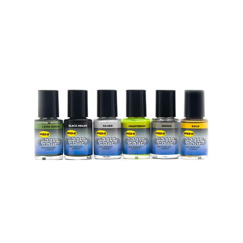 Sonic Coat Brush s’ applique au pinceau, et il est conditionnée dans un flacon de 14 g, fournit un revêtement permanent pour les leurres traditionnels en plastique souple et un revêtement amovible pour la plupart des appâts durs, des lames et des têtes de turlutte. Les couleurs vives permettent au pêcheur de personnaliser facilement leurs leurres avec des rayures et des motifs en utilisant le pinceau applicateur dans le bouchon. Cette formule non parfumée sèche en 3 à 5 minutes et est extrêmement durable. Elle peut également être utilisée avec votre marqueur ou trempette parfumée Dip-N-Glo™ préférée.