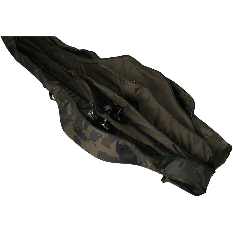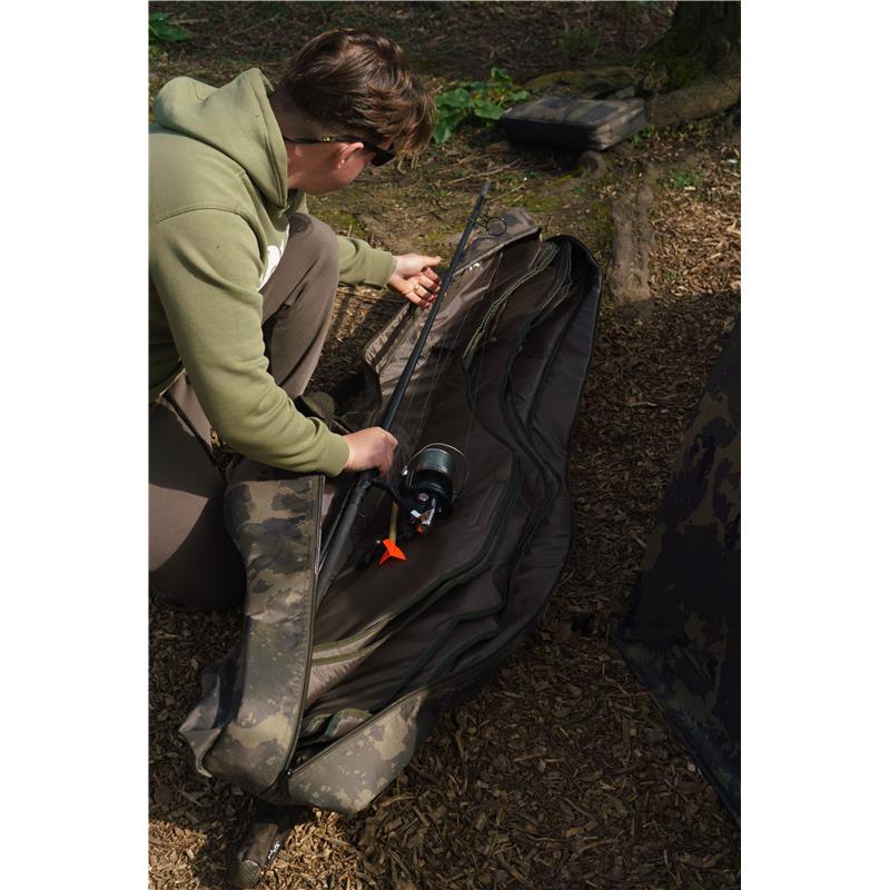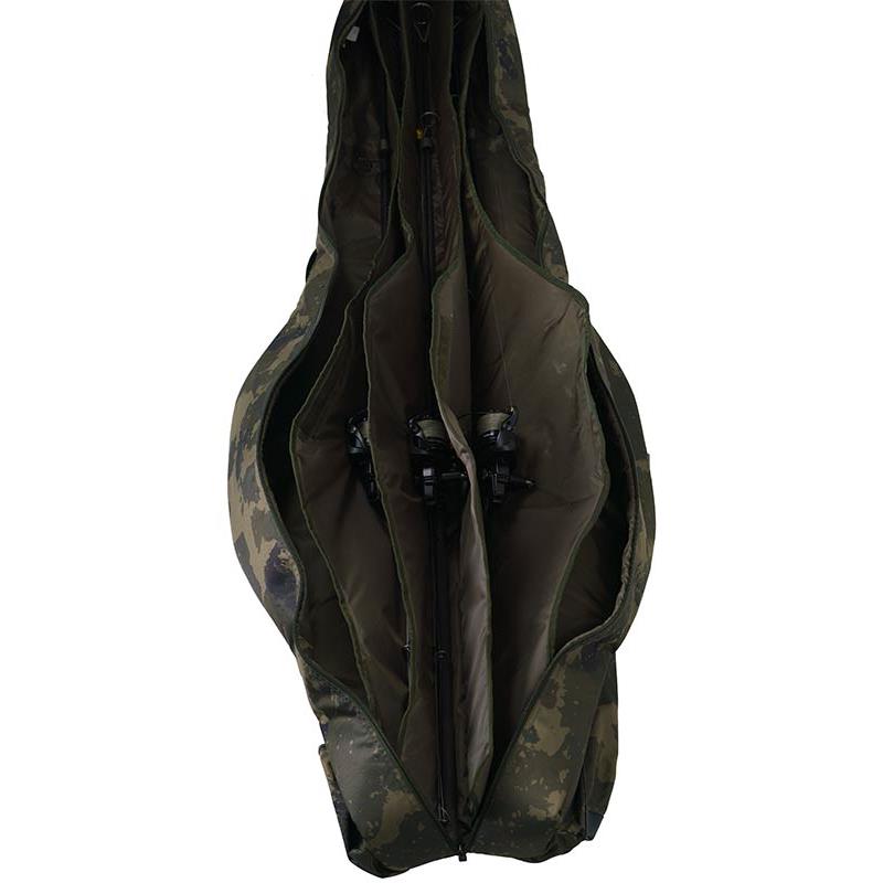 Construit à partir d’un matériau résistant à support de PU Worldwide Camo 600D, il offre un rangement interne pour jusqu’à cinq tiges, avec des parois rembourrées et des séparateurs internes offrant une excellente protection lors du transport.