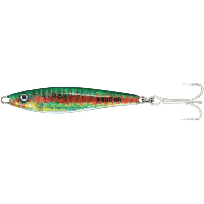 La forme de poisson et son galbe donnent une action de nage très spécifique au RAG JIG.Un grand panel de poids allant du 5 au 60gr permet de faire face à toutes les situations.8 coloris avec effet métal renforcent l’attraction de ce jig.Son prix très attractif permet l’accès à tous à la pratique de la pêche aux jigs au lancer du bord ou en lancer ou vertical en bateau.Pour de nombreuses espèces en mer, mais convient aussi en eau douce sur perches, sandres, brochet (pour les plus petites tailles).Montés avec triple VMC® TI #8 (5 & 7g), #6 (15g), #4 (20g), #2 (30 & 40g) or #1 (60g).
