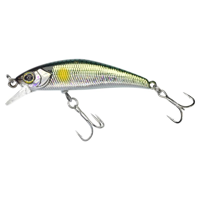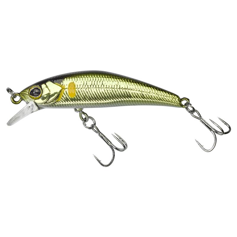 Le TRICOROLL KNOCKER 43 SHW n'est autre que la version plus lourde et bruiteuse du TRICOROLL RYUSHIN 43 SHW, petit minnow ultra dense et compact de 43mm. L'ajout d'une bille en tungstène a permis d'augmenter le poids du leurre (de 6% en moyenne en fonction des tailles) et donc de booster encore davantage ses capacités : cette bille offre de par son transfert de masse une amélioration de la précision et des distances au lancer tout en augmentant sa vitesse de descente. Cette bille lui confère une sonorité grave augmentant la présence du leurre afin de déclencher plus rapidement les prédateurs sur zone. Le TRICOROLL KNOCKER 43 SHW, leurre de type minnow est « Super coulant rapide » ou « Super Heavy Weight » qui conserve ses capacités de prédilection pour débusquer les truites qui se nourrissent de petites proies. Ses caractéristiques mécaniques le rendent opérant dès la descente (fort effet de 'Rolling'), mais aussi lors des dérives « aval » ou 'trois-quarts aval' au cours desquelles le pêcheur accompagne son leurre, canne haute, avec une bannière semi-tendue. Dans ces conditions, la moindre animation le met en mouvement par le biais de la simple pression exercée par le courant sur la bavette de forme triangulaire qui lui assure une grande stabilité dans les secteurs les plus agités. Les animations traditionnelles en 'Jerking' et en 'Twitching' demeurent bien évidemment efficaces pour tromper la vigilance des truites. Cette petite taille le destine principalement à la traque des salmonidés en torrents de montagne, petites et moyennes rivières ainsi qu'en lacs de montagne. Le TRICOROLL KNOCKER 43 SHW (coulant très rapide) sera parfait pour pêcher tous types de postes. En amont, il coulera en s'affranchissant de la force du courant grâce à son inertie. En aval, la densité et la forme hydrodynamique lui permettent de tenir les veines puissantes et de pêcher creux et quasi sur place en l'animant en tirer-relâcher avec des phases papillonnantes à la descente. Un vrai plus quand il faut déclencher les truites postées sur le fond. Afin de limiter les risques de décrochages, l'hameçon ventral est fixé par un émerillon rolling (Rolling Swivel) qui tourne à 360 degrés. Ces éléments en font également un met de choix pour pêcher la perche et le chevesne. La série TRICOROLL RYUSHIN KNOCKER est disponible en quatre tailles. 'RYUSHIN' se traduit du japonais par Centre de la rivière.