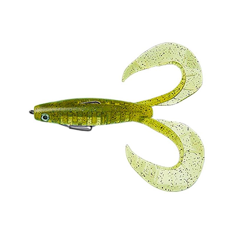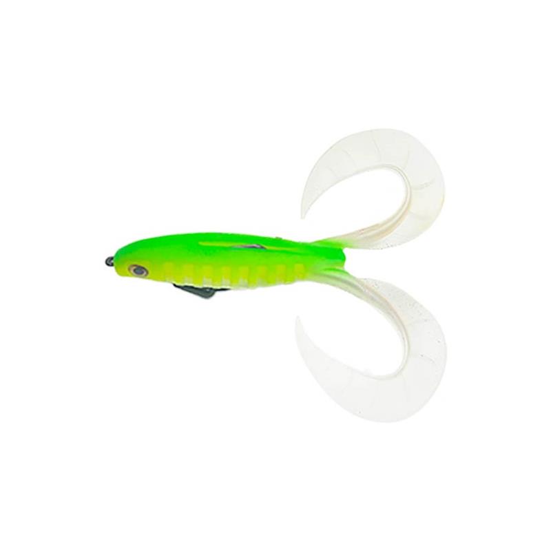 Cette année la gamme Delalande Néo s’agrandit encore avec l’arrivée du Néo Frog. Vendu monté prêt-à-pêcher avec un texan plombé, ce leurre double queue de 12cm sera à l’aise aussi bien dans les zones shallow à la recherche des black bass que dans la couches d’eau inférieur pour traquer les sandres et grosses perches. En effet sa double-caudale très souple est toujours en mouvement, même à très faible vitesse ce qui ne rend pas les carnassiers indifférents. Son montage lui permet de passer dans les milieux les plus encombrés sans s’accrocher. La large fente permet au texan de ressortir parfaitement lors de la touche afin de garantir une parfaite pénétration et de limiter au maximum les décrocher !