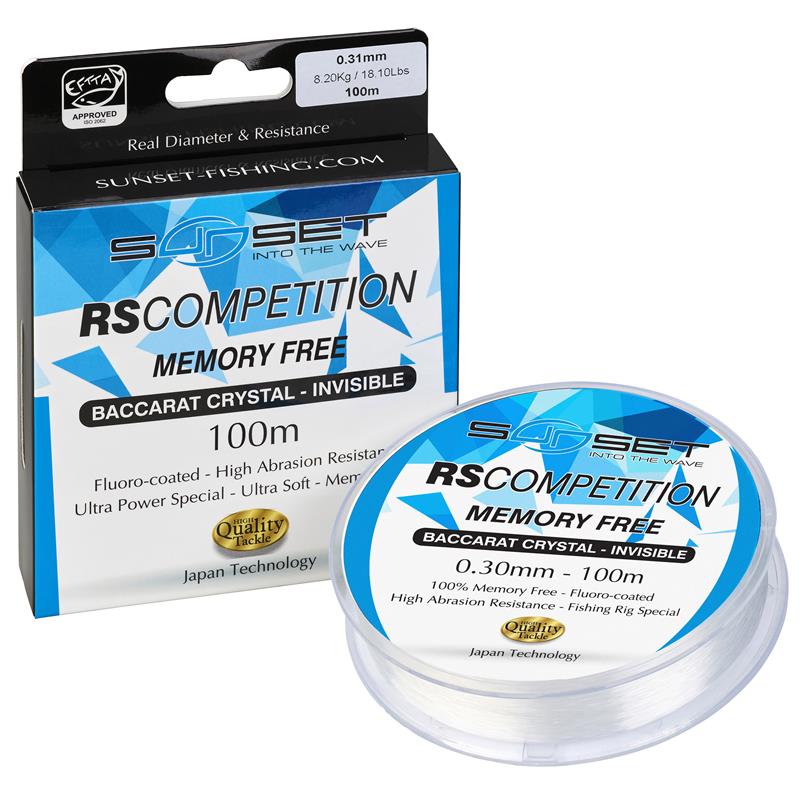 Le coloris Baccarat Crystal assurera une totale discrétion en eaux claires. De technologie japonaise, le nylon SUNSET MEMORY FREE RS COMPETITION BACCARAT CRYSTAL est approuvé EFTTA selon les normes ISO 2062.