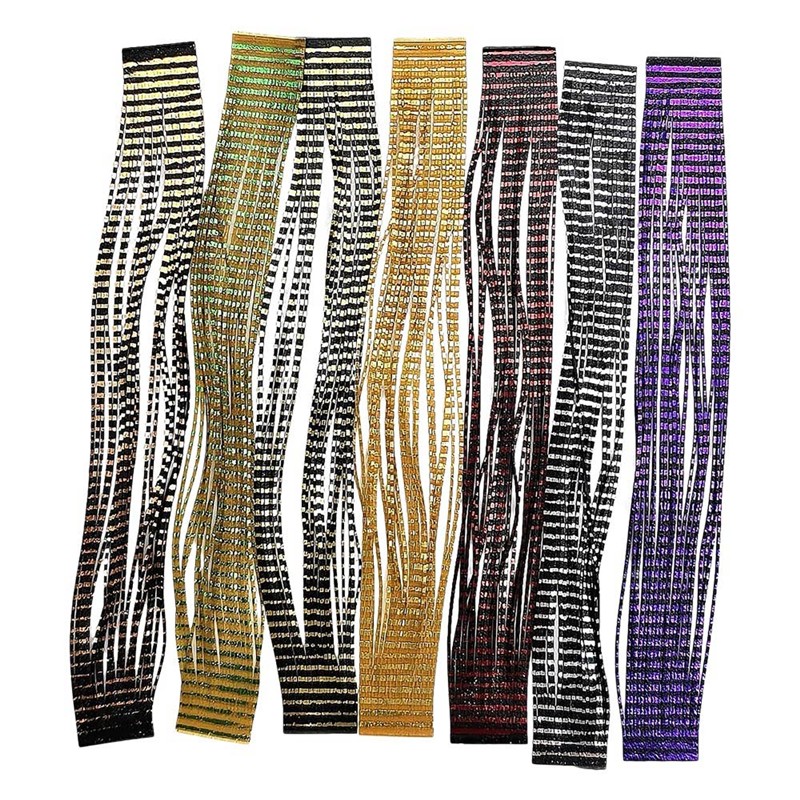 Les lamelles sont également très élastiques, ce qui facilite considérablement leur utilisation. Leur extensibilité offre un contrôle total sur la finesse du corps : étirées davantage, elles deviennent translucides et fines ; utilisées avec moins de tension, elles apportent plus de volume et un effet métallique plus intense. Cette polyvalence permet d’adapter les montages à toutes les tailles d’hameçons.