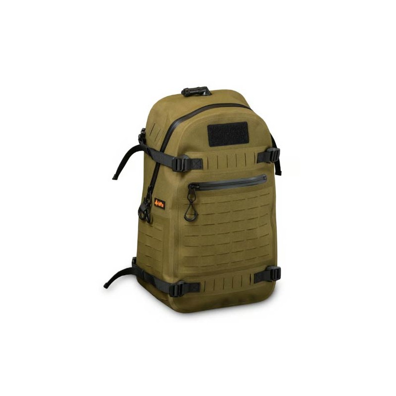 Le sac à dos est livré avec des bandes velco double face permettant de fixer tubes, cannes, ... Afin de maintenir une bonne étanchéité, le zip nécessite un minimum d’entretien (lubrification). Un tube de graisse est fourni avec le sac. Placez une noix de graisse dans le fermoir en position ouverte, et actionnez le zip pour répartir le lubrifiant sur le zip. Cela facilitera la fermeture et assurera une bonne étanchéité. Les accessoires MOLLE présentés sur les photos sont vendus séparément. Le sac est couvert par une garantie de 2 ans sur les matériaux et les assemblages.