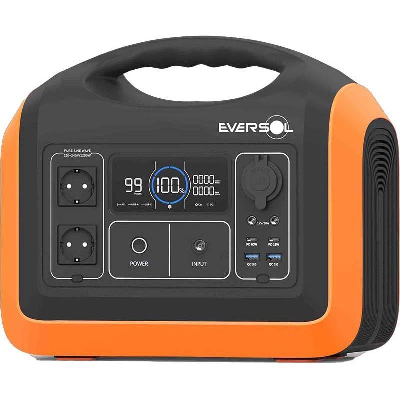 La station EVERSOL 1200W est une solution d’alimentation portable puissante et polyvalente, conçue pour répondre à tous vos besoins en énergie, que ce soit à la maison, en voyage ou sur un chantier. Avec une capacité de 992Wh et une puissance de sortie de 1200W, elle peut alimenter une large gamme d’appareils.