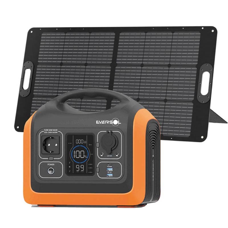 Description : Ce pack composé de la station EVERSOL 600W et d'un panneau pliant Eversol 100W vous offre une puissance élevée et une grande capacité de 595Wh, idéale pour alimenter des appareils gourmands en énergie, aussi bien à la maison qu’en déplacement. Robustes, fiables et polyvalents, cette station et ce panneau sont conçus pour répondre aux besoins des utilisateurs exigeants.