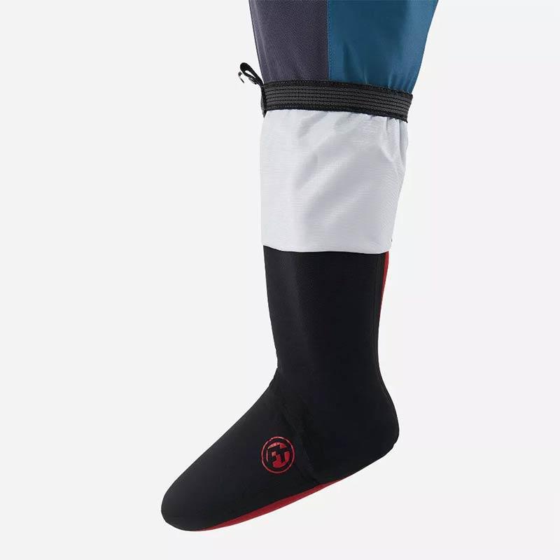 Comment choisir son Waders Finntrail : La chaussette en néoprène est extensible et permet de couvrir plusieurs tailles. Pour choisir la pointure des chaussures, veuillez vous référera guide de taille