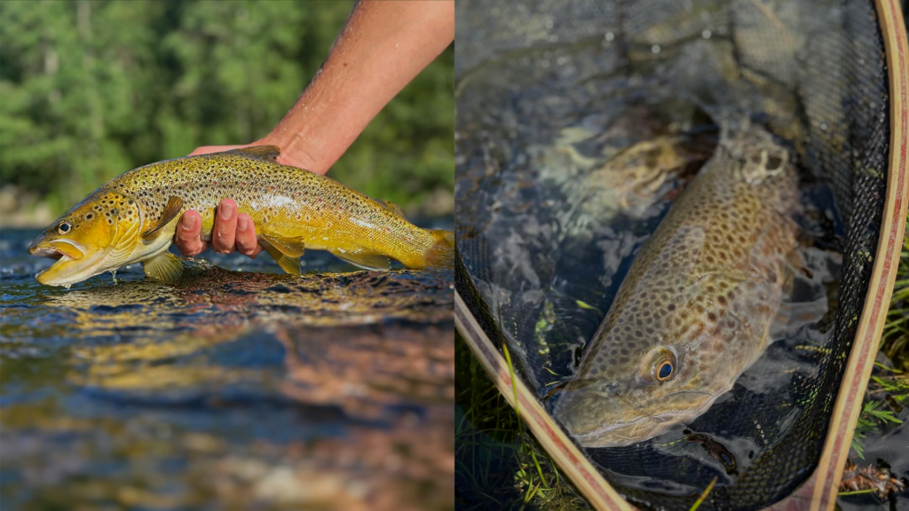 Si le corps de ligne est coloré, il vous faudra un bas de ligne transparent et le plus discret possible. Comptez environ 1 m de longueur. Cette mesure peut varier suivant la clarté et si les poissons sont tatillons. Quant au diamètre à utiliser, sachez qu’il peut varier entre 12 et 20/100 suivant les milieux et la taille des truites rencontrées. Votre corps de ligne, dans l’idéal, va mesurer 2/100 de plus pour éviter les casses hors bas de ligne. Si vous débutez, 16/100 est un bon début pour la majorité des conditions rencontrées. Plus encore que sa longueur, c’est le diamètre du fil qu’il faudra changer pour décider les truites boudeuses. Plus il est fin et plus le montage sera discret et la présentation naturelle. Par contre, attention à la casse ! Le frein de votre moulinet devra être parfaitement réglé.