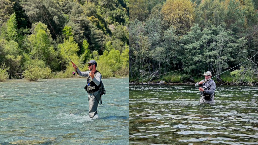 Contrairement à nombre de types de pêche où la tresse est reine, ici il vaut mieux privilégier le nylon. Certes la sensibilité est moindre mais l’élasticité est indispensable pour amortir les coups de tête des salmonidés et limiter les décroches. Ne lésinez pas sur la qualité. Il faut qu’il soit soyeux en main (toujours pour le plaisir de pêche mais également pour la glisse dans les anneaux), résistant, élastique mais pas trop non plus. Je vous conseille également de le prendre coloré (sans qu’il soit non plus fluo « pétant ») pour une bonne visibilité de votre ligne. Toujours savoir où vous êtes est un des secrets de cette pêche.