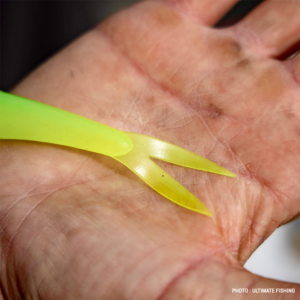Ce n’est pas un simple « shad à queue coupée » ; c’est le mariage parfait entre la souplesse légendaire du One Up et une vibration en V minimaliste, spécifiquement conçue pour débloquer les poissons les plus éduqués. Et pas n’importe quelle queue, un appendice perpendiculaire aux finesses que l’on connaît déjà.