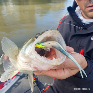 Même si le sandre chasse avant tout à la vibration et à la position du leurre, l’attractant joue un rôle clé dans la pêche en verticale, surtout en conditions difficiles.