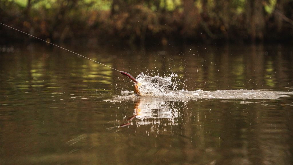Le chatterbait, avec sa palette vibrante, offre une combinaison de vibration et de nage qui peut déclencher des touches rapides. Un compromis idéal pour pêcher plus lentement ou pour descendre plus profond dans la couche d’eau.
