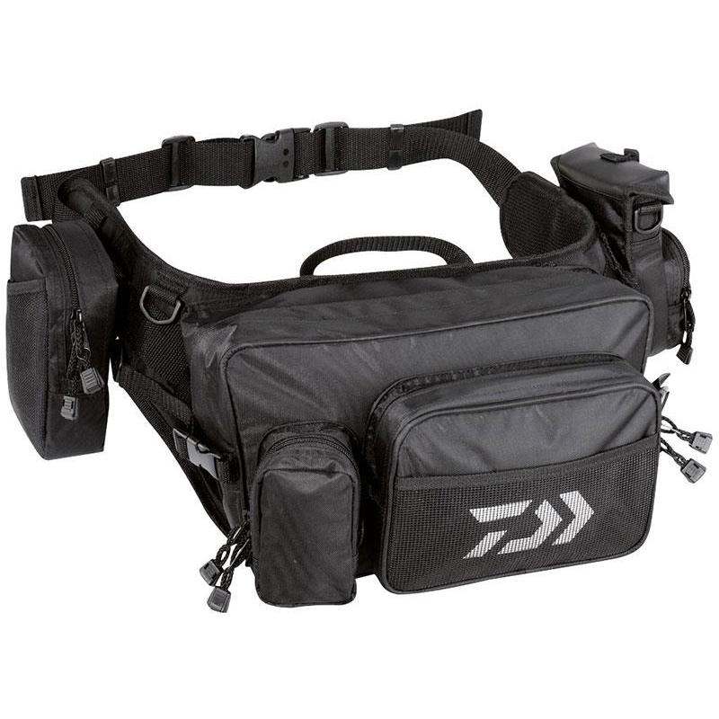 Sie verfügt über zwei Fronttaschen, von denen eine mit dem D-Vec Daiwa-Logo versehen ist. Diese Bauchtasche hat eine kleine und eine große Tasche, die Beutel mit Gummiködern oder eine kleine Box aufnehmen können. Der Gürtel ist mit einem Fach für Zange/Schere und einer PVC-Öse ausgestattet, die beispielsweise eine Fischzange (fish grip) aufnehmen kann. Der Gürtel wird mit großen verstärkten Clips verschlossen und verfügt an jeder Seite über seitliche Clips zum schnellen Festziehen, z. B. wenn man von sperriger Kleidung zu einem t-shirt wechselt. Außen aus Polyester mit sehr dichter Webung, 420 deniers. Bauchtasche für alle dynamischen Köderangeltechniken.