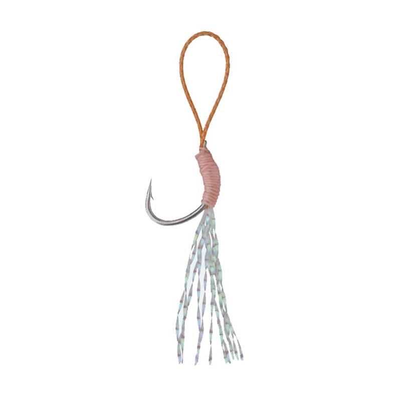 Der Assist BKK ThunderBolt+ ist speziell für das Micro-Jigging konzipiert. Der Haken verfügt über eine nach innen gebogene Spitze und eine glänzende, korrosionsbeständige Beschichtung; Der Assist ist mit einem Geflecht und einem Nylonkern ausgestattet, die sowohl die notwendige Stärke als auch die Steifigkeit bieten, um seine Ausrichtung zu halten; Schließlich helfen die glänzenden Fasern, die Attacken zu stimulieren und erhöhen dadurch die Bisse.
