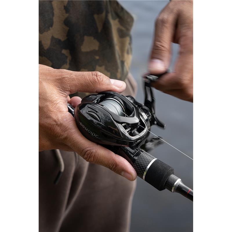 Eine vielseitige Rolle für das Raubfischangeln. Erleben und hören Sie die überlegene Leistung der Bremse der Rolle Baitcast Demonic. Die Bremsklinke erzeugt einen aufregenden Klang, der die Optimierung ihrer Einstellung im Drill ermöglicht. Dieses Modell verfügt über ein System, das Schnurverwicklungen verhindert und Ihnen zudem präzise Würfe erlaubt, sodass Sie Ihren Köder genau an der gewünschten Stelle platzieren können, unabhängig von der Entfernung. Gefertigt aus einem leichten Graphitgehäuse verfügt die Rolle über 5+1 Kugellager und ein reibungsarmes Zahnrad für bessere Laufruhe und erleichterte Würfe auf große Distanz.