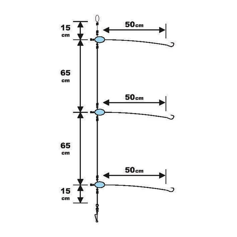• Montage: speziell für Spariden (Dorade, Pagre, Barsch…) • Köder: Küstenwürmer, kleiner Calamari-Streifen, Chipiron, Muschel, • Tipp: Verwenden Sie ein farbiges Ei-Gewicht (weiß, gelb…) von 80g bis 220g, abhängig von der Strömung • Länge 160cm • 3 Fluorocarbon-Leinen von 50cm • Verfügbar in Haken Nr. 8