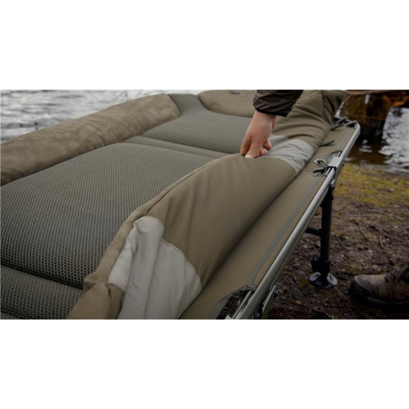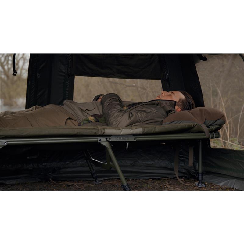 der lit sp ist ein hochwertiges bedchair, das viele der herausragenden funktionen von solar integriert, setzt dabei jedoch den fokus auf ein geringeres gewicht. es handelt sich im wesentlichen um die neue generation unseres marktführenden schlafsystems, mit reduziertem gewicht, reduziertem preis, aber reich an funktionen. die einzigartige 3d-matratze dura-dore umfasst tausende winziger, gewickelter netzfedern, die eine lufttasche zwischen ihnen und dem bett schaffen und außergewöhnlichen komfort sowie eine hervorragende luftzirkulation bieten. diese auf einem rahmen vernietete matratze ist auf unserem übergroßen, hochfesten aluminiumrahmen aufgebaut und verfügt über unser fußsystem spring-loc. wir haben daran gedacht, den stress beim verstauen dieser systeme zu reduzieren, indem die kompressionsgurte von der beinverriegelung getrennt wurden. so können sie das bett komprimieren, während die füße noch geöffnet im inneren eines biwy sind und die matratze vom boden abhebt. abgeschlossen mit dem großartigen camouflage-muster solarcam ist das einzige problem jetzt, sie aus diesem schlafsystem herauszubekommen, wenn sie einen abgang hören.