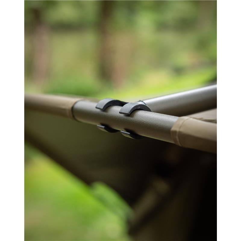 Überzelte sind separat erhältlich; sie fügen eine zweite Schicht hinzu, die die Isolierung das ganze Jahr über verbessert, die Kondensation reduziert, die Belüftung dank der hinteren Öffnungen mit Moskitonetz verbessert und zusätzlichen Stauraum schafft.