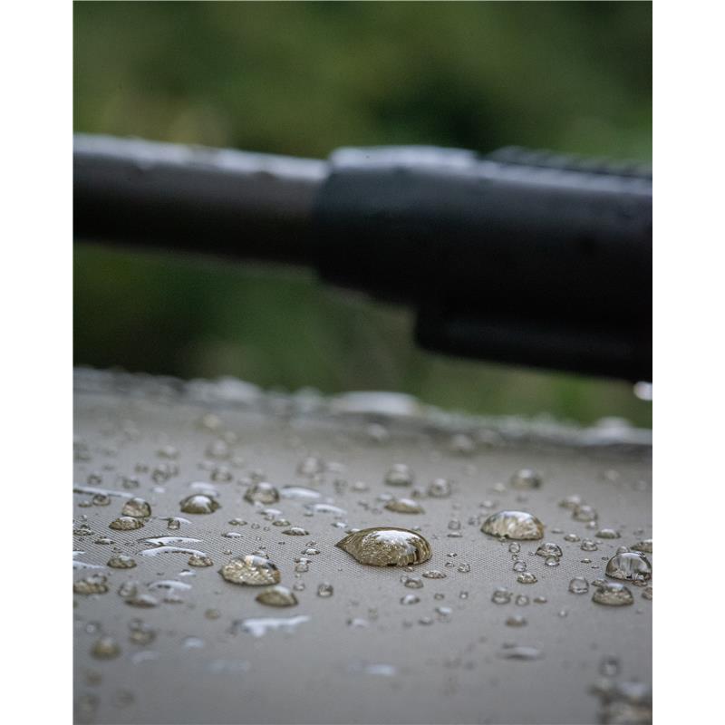 • Hergestellt aus Gewebe mit einer Wassersäule von 8000 mm, ausgestattet mit einer dunklen Laminierung, um das Eindringen von Licht zu verringern und den Unterstand im Sommer kühler zu halten. • Konstruktion mit zwei Gestängen vom Typ « pram-hood » und einem größeren Vordach als beim Vorgängermodell, die besseren Schutz bietet. • Ausgestattet mit Mückenschutzpaneelen hinten und vorne (jeweils an beiden Seiten der Tür) für optimale Belüftung. • Extraweite Türöffnung von 112 cm mit beidseitig öffnender "Briefkasten"-Konstruktion und austauschbaren Paneelen aus Moskitonetz, PVC oder Vollstoff. • Das Frontpaneel kann aufgerollt werden, um den Unterstand in eine offene Version zu verwandeln. • Wird mit einem kompletten Satz Stützgestänge, einer leichten Bodenmatte, robusten Heringen und einer Reisetasche mit Reißverschluss geliefert. • Kaki-Stoff mit grünem Gestänge sowie zwei Rutenriemen an der Vorderseite des Unterstands.