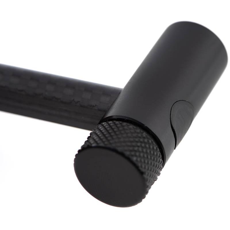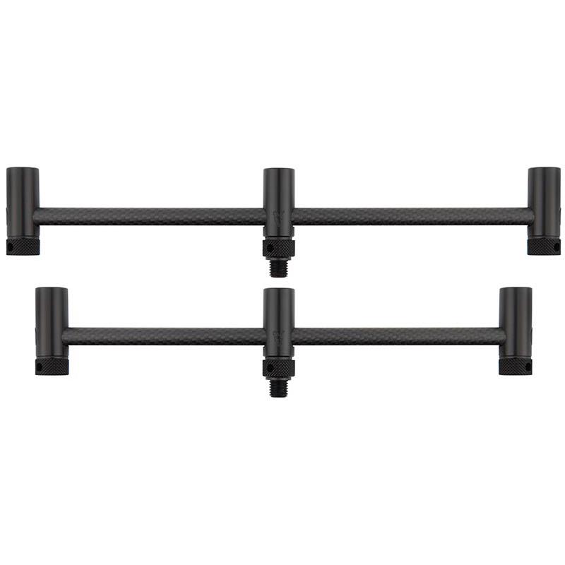 Feine, verstellbare Buzzbars aus schwarzem 3K-Kohlenstoff und schwarz eloxiertem Aluminium.