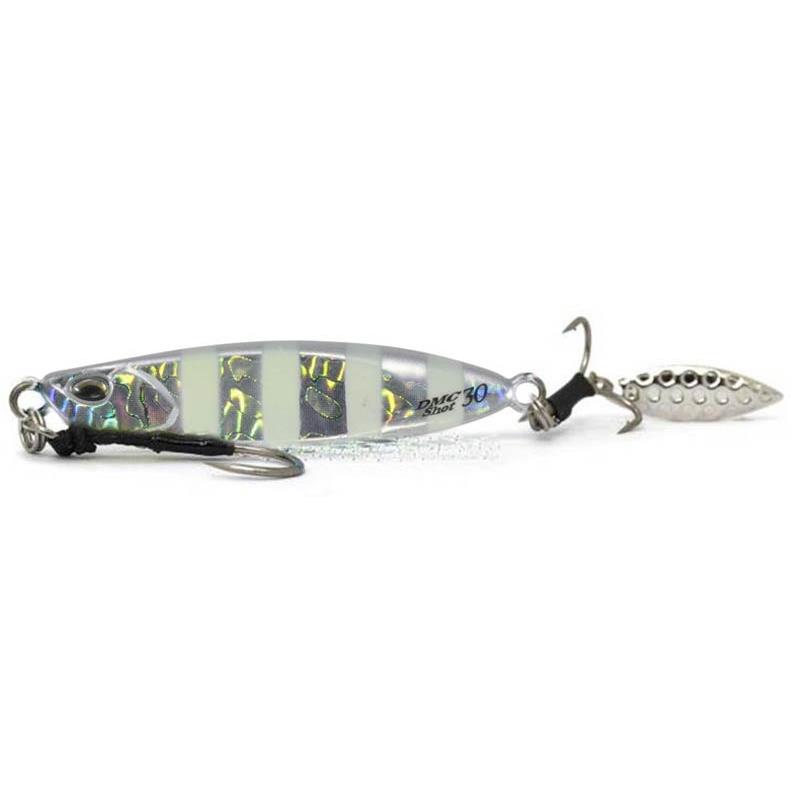 Der Drag Metal Cast Shot ist ein Casting-Jig, der sich durch seine flachen Seiten und einen Drillingshaken mit Heckblatt auszeichnet. Dieses Blatt ergänzt die starken Lichtblitze, die beim Absinken des Köders von einer Flanke zur anderen entstehen, indem es zusätzliche Vibrationen erzeugt. Es ist ein vielseitiger Köder, der durch eine Abfolge von Rutenschlägen mit Pausen geführt werden kann, beim Ziehen (indem man ihn halbgestrafft wieder absinken lässt, damit er gleitet), aber auch durch einfaches lineares Einkurbeln animiert werden kann. Er ist sehr einfach zu verwenden, vom Ufer wie vom Boot, im Meer wie im Süßwasser, und lässt sich auf sehr große Distanz werfen.