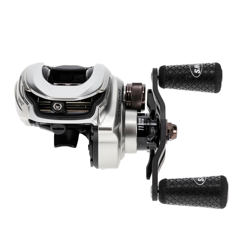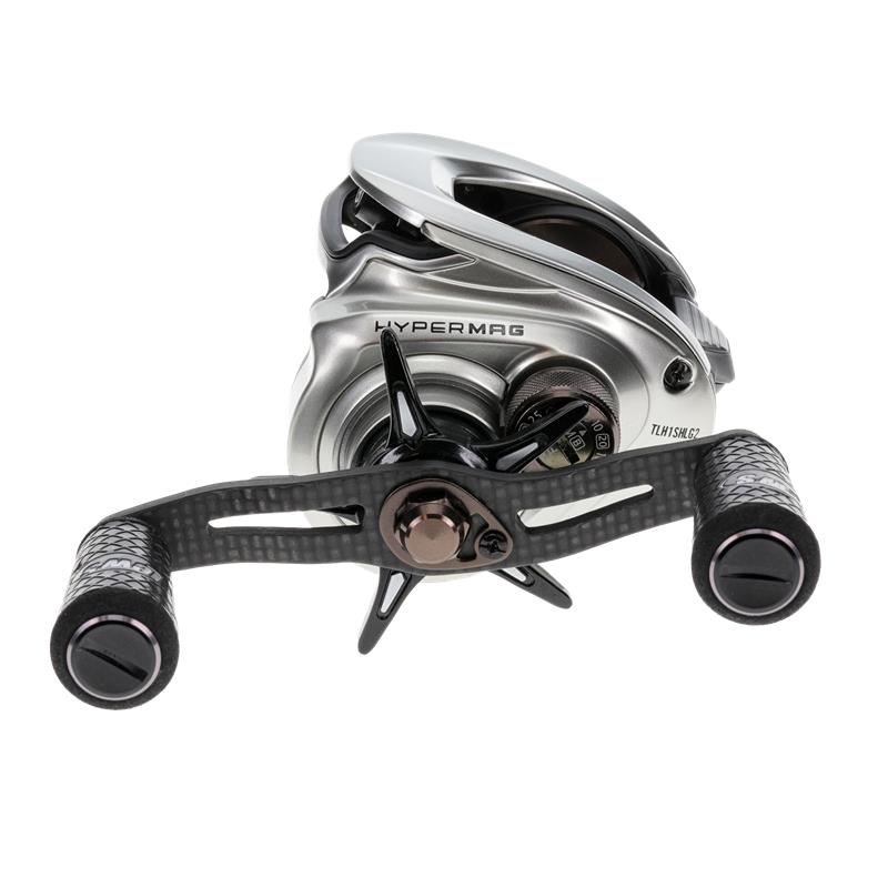 Das Team von Lew's® treibt die Grenzen von Innovation und Leistung weiter voran und hat die HyperMag® Baitcast-Rolle überarbeitet, um nicht nur ihre Funktionalität, sondern auch das Nutzererlebnis zu verbessern. Die HyperMag-Rolle integriert das P2 Super Pinion®-Getriebe mit einem von zwei Lagern gestützten Ritzel, das ein verbessertes Zahnradspiel für optimale Laufruhe und eine verlängerte Lebensdauer bietet. Der ergonomische Monoblock-Rahmen aus Magnesium und die Seitendeckel aus Carbon C40 sind sowohl robust als auch extrem leicht; die Rolle wiegt nur 5,2 oz. Das "kaum wahrnehmbare" Gefühl dieser Rolle bietet Anglern den Komfort und die Kontrolle, die sie suchen.