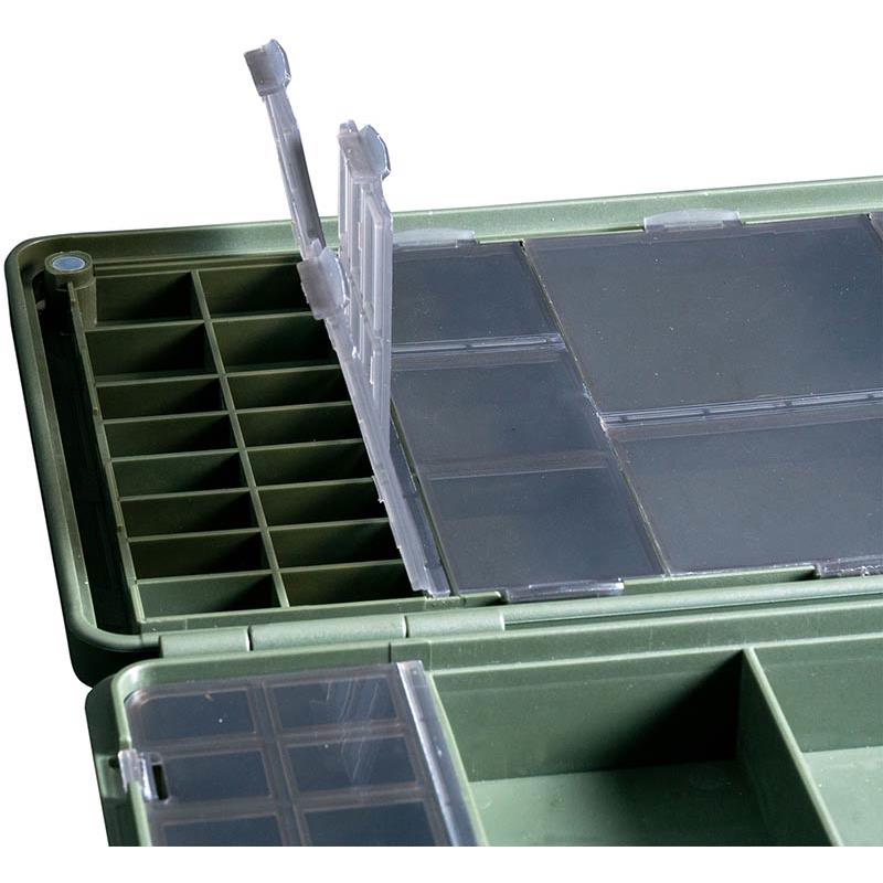 Verstauen Sie all Ihr Montagezubehör in einer einzigen Box, ohne viel Platz zu beanspruchen dank der Tackle-Box Armoury Lite. Mit ihren 57 Fächern bietet sie ausreichend Platz, um alles unterzubringen, was Sie benötigen, und bleibt dabei so leicht und kompakt wie möglich. Ob Wirbel, Anti-Tangle-Hülsen, Haken, Vorfächer, PVA, Scheren oder anderes Montagezubehör – in der Armoury Lite finden Sie sicher genug Platz, um alles zu verstauen.
