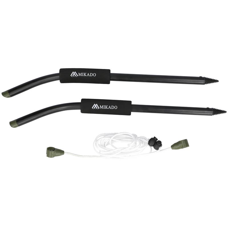 satz aus 2 erdspießen mit schnur, um ihre wurfentfernung genau zu berechnen. in den boden im abstand von 3m zueinander stecken, dann die schnur aufwickeln, um die entfernung anhand der anzahl der umdrehungen zu berechnen.