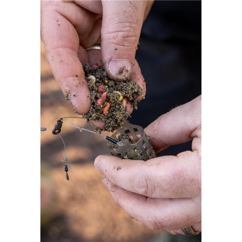Das ist mit herkömmlichen Futterkörben nicht möglich. Das Design ermöglicht es Ihnen, Fische unabhängig von der Tiefe, in der sie schwimmen, zu fangen.