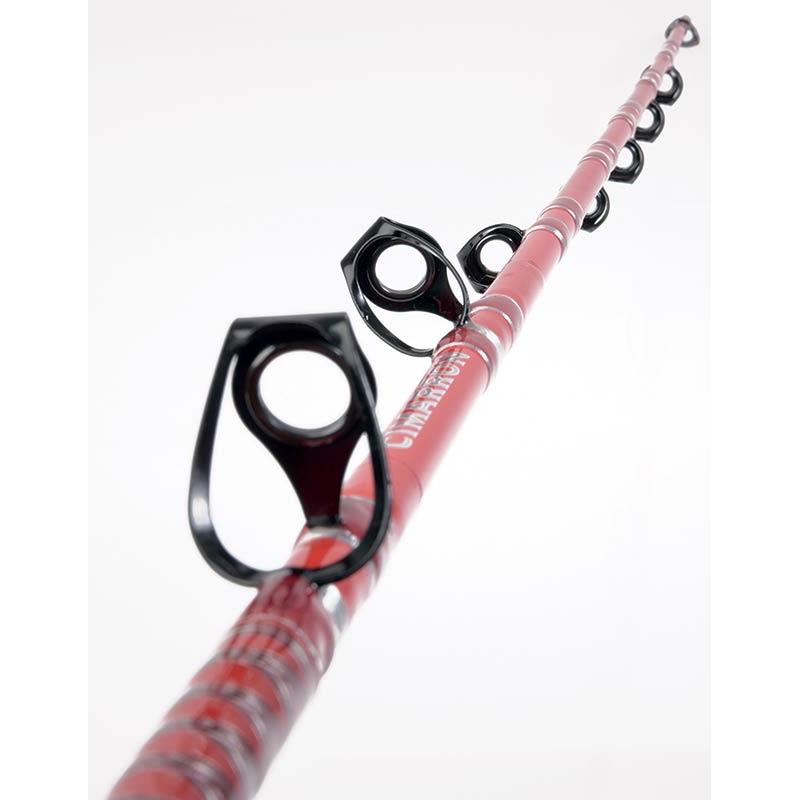 Ruten für anspruchsvolles Currican und den professionellen Einsatz, mit besonders sorgfältigem Design. Robuste Blanks aus massiver Faser. Hochwertige ALPS-Rollenringe mit Lagern aus Edelstahl. ALPS-Metallrollenhalter und verstärkte Ringe. Überzogene Griffenden. ALPS-Metall-Kreuzendstücke und gerade Fersen (50 et 80 Lbs) oder gebogene (120 y 130 Lbs). Hochwertige Futterale.