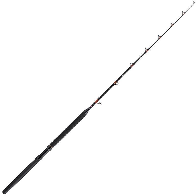 die penn conflict xr tuna ist eine hervorragende Serie von Ruten, die für das Schlepp- und Treibfischen entwickelt wurden. Diese Ruten sind technisch schlichtweg perfekt. Ausgestattet mit einem äußerst robusten Blank mit x-wrap-Technologie und Seaguide Heavy-Duty-Ringen können diese Ruten die größten Fische des offenen Meeres bewältigen. Eine einzigartige Eigenschaft dieser Ruten ist, dass sie doppelt gebundene Ringe in spiralförmiger Montage (links) haben; dadurch wird verhindert, dass die Schnur bei starker Belastung den Blank der Rute berührt. Der Rollenhalter aus Aluminium ist mit einer Doppel-Sicherungsmutter ausgestattet, die eine perfekte Befestigung der Rolle an der Rute gewährleistet. Das gekreuzte X-Muster und das hochdichte EVA bieten perfekten Halt, während der glatte Fersenbereich verhindert, dass das Rutenende im Rutenhalter beschädigt wird. Der Aluminium-Kardan bietet zusätzliche Widerstandsfähigkeit und eine sichere Verbindung zum Kampfgeschirr während eines Duells.