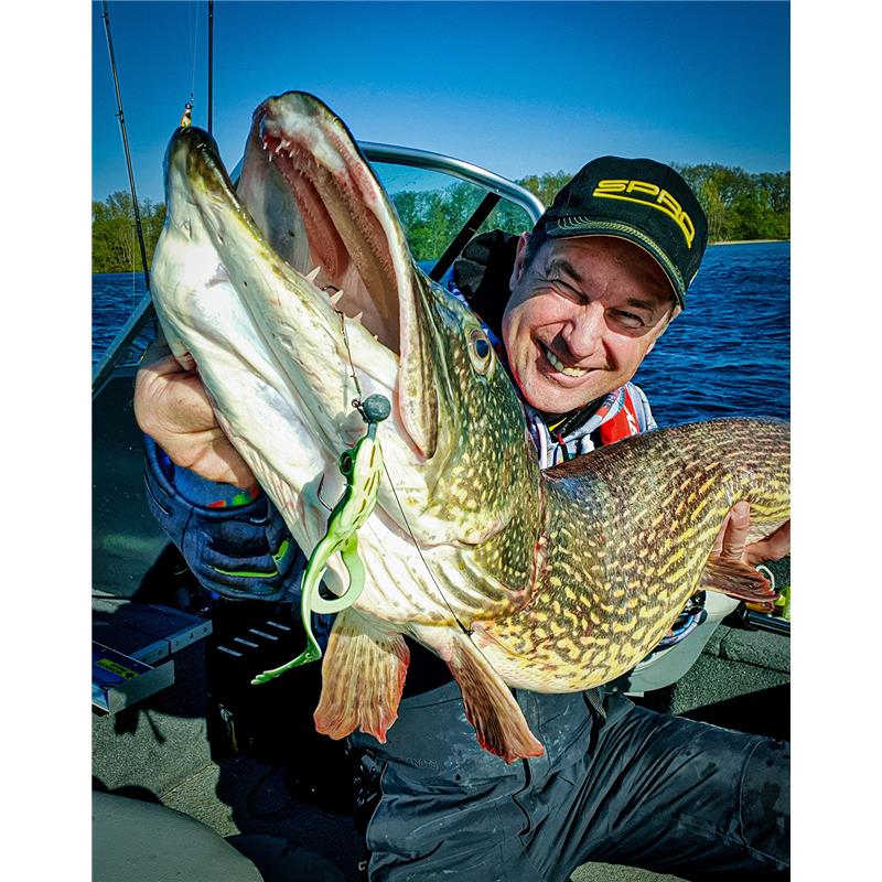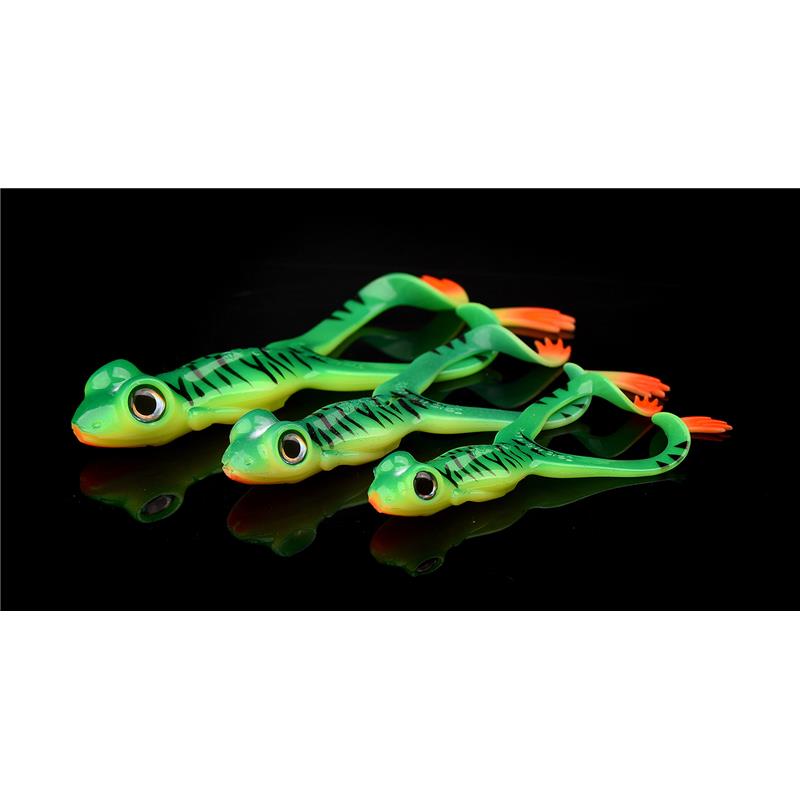 Die Iris The Frog ist eine sehr realistische Imitation eines Frosches. Sie besitzt eine sehr attraktive Aktion dank ihrer kleinen Beinchen, die sich bereits bei sehr geringer Geschwindigkeit in Bewegung setzen. Erhältlich in 3 Größen: 10, 12 und 15 cm. Die auf der Oberseite angebrachten Haken‑Größenindikatoren machen die Montage mit einem SPRO-Bleikopf sehr einfach. Aber die Iris The Frog kann auch mit einem Texas-Haken Gamakatsu Offset oder Worm bestückt werden, um im Kraut zu angeln. Erhältlich in einer guten Palette von Farbtönen, die zum Fischfang entwickelt wurden.