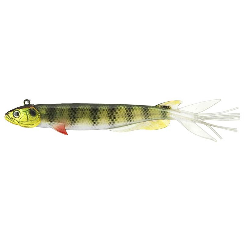 Köder zum Angeln bereit für das Angeln vom Boot aus bei aktiver Suche nach den größten Raubfischen (Hechte, Zanderproben im "scharfen Schießen"). Schnelles Absinken auf dem Gebiet, starke Vibrationen ausgelöst durch die Fortsätze der Schwanzflosse, kräftiger dreizackiger Haken.