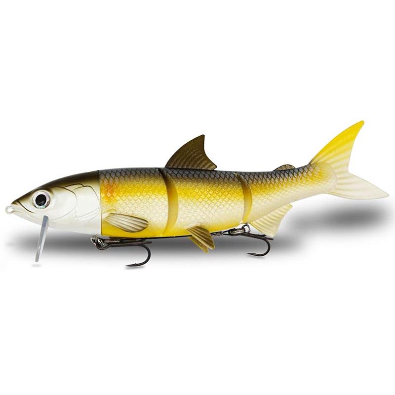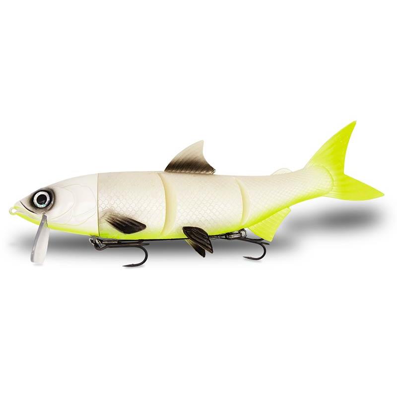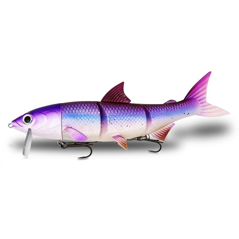 Die "Bigbaits" sind bekannt als Magnete für große Hechte. Daher war es nur eine Frage der Zeit, das Renky-Programm mit seiner 35cm-Version zu ergänzen. Die 35cm-Version schwimmt ebenso elegant und filigran wie die 25cm-Version. Die XL-Version sinkt mit der gleichen Schleppgeschwindigkeit, 1 Meter tiefer als die kleineren Versionen (2-4 Meter für die Versionen 18 und 25cm). Die Splinterringe haben eine Bruchkraft von 80 kg, was den Einsatz der Renky one für das Welsfischen oder für das Meeresfischen ermöglicht. Das Kinn des Köders ist nicht geklebt und kann im Falle eines Hakens ohne Beschädigung des Köders leicht entfernt werden. Der Köder wird komplett montiert geliefert mit einem Stinger und 1 Ersatzkinn und ist bereit zum Fischen. Das Pin-System von Fishing Ghost ermöglicht während des Kampfes das Lösen des hinteren Teils des Stingers und verringert so das Risiko, den Fisch während des Kampfes zu verlieren.