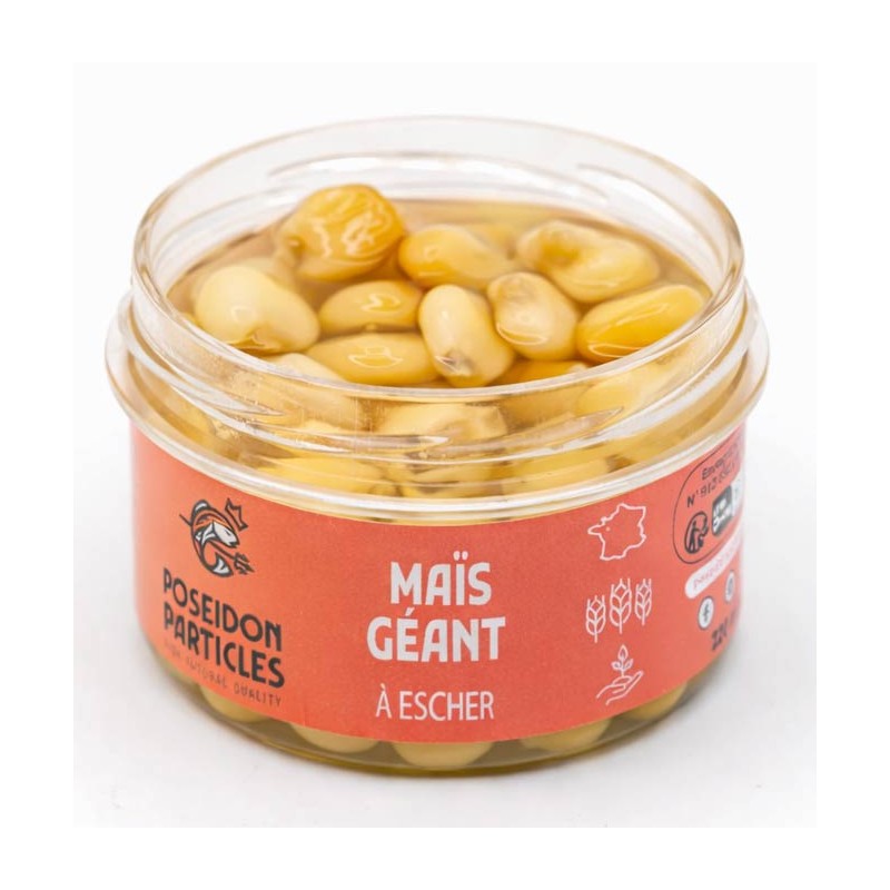 Die Maïs Géants Poséidon im Glas, auch genannt « Pferdezahn », sind Maiskörner sehr großen Kalibers, sorgfältig ausgewählt und handwerklich zubereitet, um einen natürlichen, extrem attraktiven Köder beim Karpfenangeln zu bieten. Dank ihrer XXL-Größe ermöglichen diese Körner eine selektivere Präsentation, reduzieren die Auswirkungen kleiner Fische und zielen gezielt auf Karpfen ab.