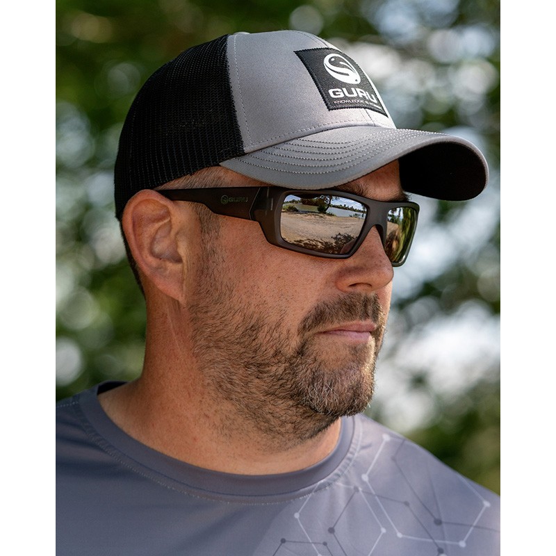 Das robuste Vorderteil aus Baumwolle trägt ein Guru-Logo auf einem schwarzen Patch, mit einer eleganten grauen Ausführung, die sich leicht mit Ihrer Angelbekleidung kombinieren lässt.