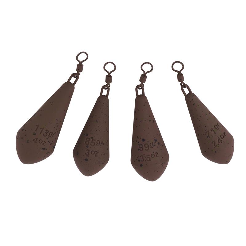 Ein drehbares Blei für das Karpfenangeln, speziell für das Angeln auf Distanz konzipiert. Die Beschichtung fügt sich perfekt in den Seegrund ein. Diese Bleie können verwendet werden, um ein selbsthakendes Schraubsystem zu erstellen. Drehbare Bleie können in Kombination mit Blei-Clips oder einer Heli-Chod-Konfiguration verwendet werden.