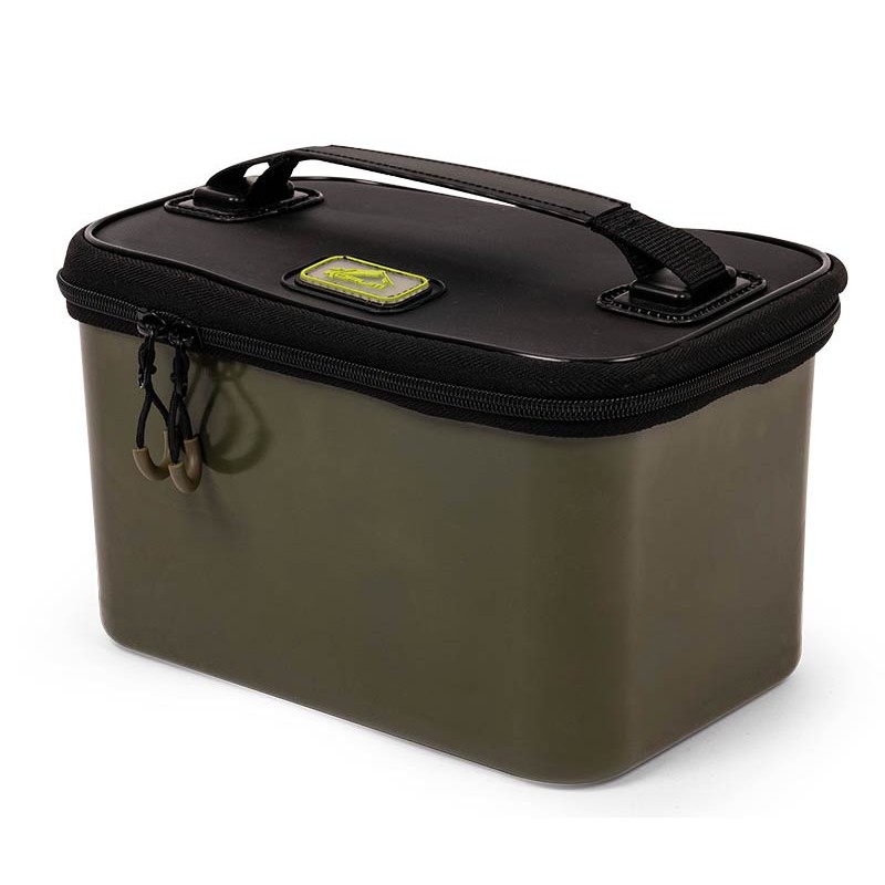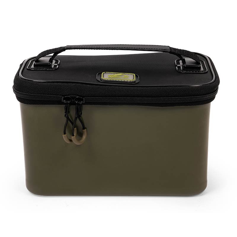 diese ködertasche aus eva bietet eine fantastische aufbewahrung für reiseangler mit einer robusten, formgepressten außenhülle für mehr langlebigkeit. geliefert mit zwei innenschalen, von denen eine ein 3 mm netz zum umrühren von naturködern und futter enthält. diese können während der verwendung außen an der tasche befestigt werden, wodurch eine große arbeitsfläche entsteht. unter den schalen ist ausreichend platz für köderdosen und anderes. geliefert mit bequemen tragegriffen und einem sehr widerstandsfähigen reißverschluss. 28 x 18 x 16 cm. innenschalen 15 x 12 x 6. 100 % eva