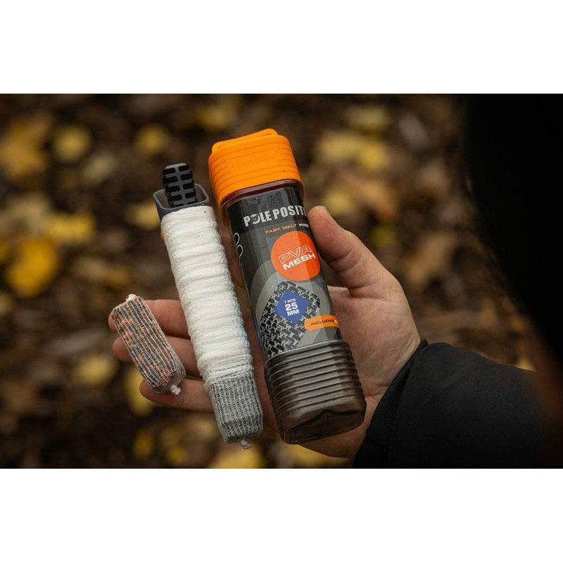 Hochwertiges PVA-Netz, entwickelt für die Herstellung kompakter Sticks oder Mesh-Beutel. Der Durchmesser 25 mm ist ideal für feine und dezente Präsentationen, während 35 mm mehr Volumen für gröbere Mischungen und Partikel bietet.