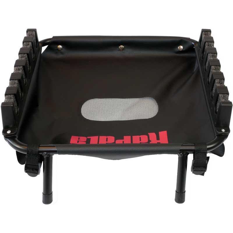 Er passt sich an jedes float tube an, der Aufbau ist einfach und schnell und ermöglicht es Ihnen, alle montierten Ruten im Handumdrehen griffbereit zu haben. Das Haltesystem für Ruten aus vorgeformtem, hochdichtem Schaum passt sich allen Rutendurchmessern an und erlaubt es Ihnen, die Ruten einhändig zu entnehmen oder wieder abzulegen. Das Fach aus PVC-Plane verfügt in seiner Mitte über eine Wasserablauföffnung (Netz) und ist der perfekte Ort, um einige Köder für bevorstehende Wechsel abzulegen. Der 6-Ruten-Halter ist das unverzichtbare Werkzeug, um in wenigen Sekunden schnell auf Köder- und Technikwechsel zu reagieren, der Schlüssel zum Erfolg auf dem Wasser.