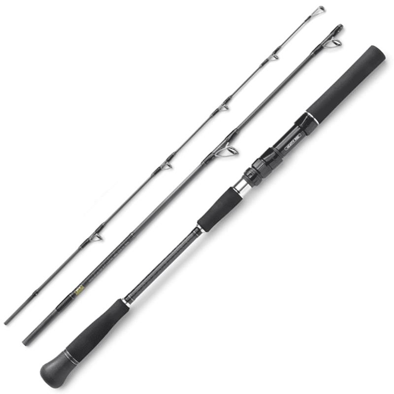 Unsere Skywalker Norway Jigging Spin 613S/300, dreiteilig, ist speziell für das anspruchsvolle Meeresangeln rund um Norwegen und Co. konzipiert. Mit einer Gesamtlänge von 1,87 m und einem hohen Wurfgewicht von 100 bis 300 G ist das Modell ideal zum Pilken und Jiggen mittleren Gewichts vom Boot aus. Das kraftvolle und hochentwickelte Carbon Blank NET-V III ermöglicht es Ihnen, Köder bis zu 300G verführerisch zu präsentieren und bietet höchstes Maß an Sensibilität und Übertragung. Das hochwertige Fuji Alconite-Ringsatz lässt Ihre Schnur nahezu geschmeidig durch die Ringe der Rute gleiten - weniger Reibung, maximale Wurfweiten und bessere Übertragung ! Selbst die zaghaftesten Attacken von räuberischen Tiefseefischen bleiben mit unserer Skywalker Norway Jigging Spin 613S/300 nicht mehr unbemerkt. Das Rückgrat verfügt über ausreichende Kraftreserven, um sogar den größten Meeresfischen wie großen Dorschen standzuhalten. Die Rute passt dank ihrer Teilung und der Transportlänge von nur 75 cm in fast jeden Koffer. Das Design der Skywalker Norway Jigging Spin 613S/300 ist sportlich, modern, die silberfarbenen Dekorhülsen glänzen und betonen subtil die hohe Qualität dieses Modells. Der ergonomisch geformte, schwarze EVA-Griff liegt angenehm in der Hand und bietet Ihnen den nötigen Halt beim Kampf mit großen Meeresfischen.