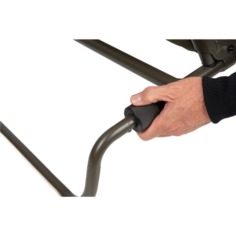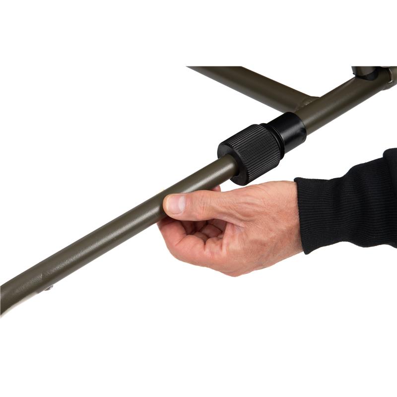 • Verstellbarer Rahmen mit drei Verwendungspositionen : am Bedchair, an der Seite des Bedchair-Rahmens, vorne am Unterschlupf oder als eigenständiger niedriger Stuhl.