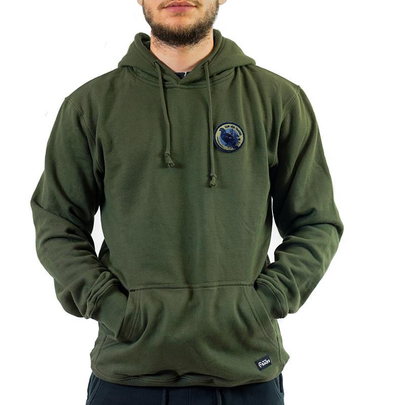 Dieses Set enthält: • 1 personalisierbarer Jagd-Hoodie Auf Deinen Spuren - Khaki • 1 Patch Taube