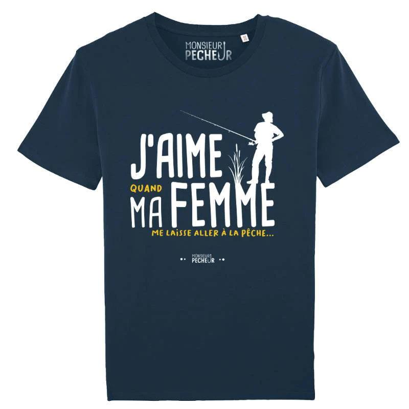 das schönste geschenk, das eine frau ihrem mann machen kann : ihn zum angeln gehen zu lassen ! sei stolz, angler zu sein, indem du dieses t-shirt der marke monsieur pêcheur trägst, um deine freunde zum lachen zu bringen ! eine sehr gute geschenkidee für einen angler mit humor.