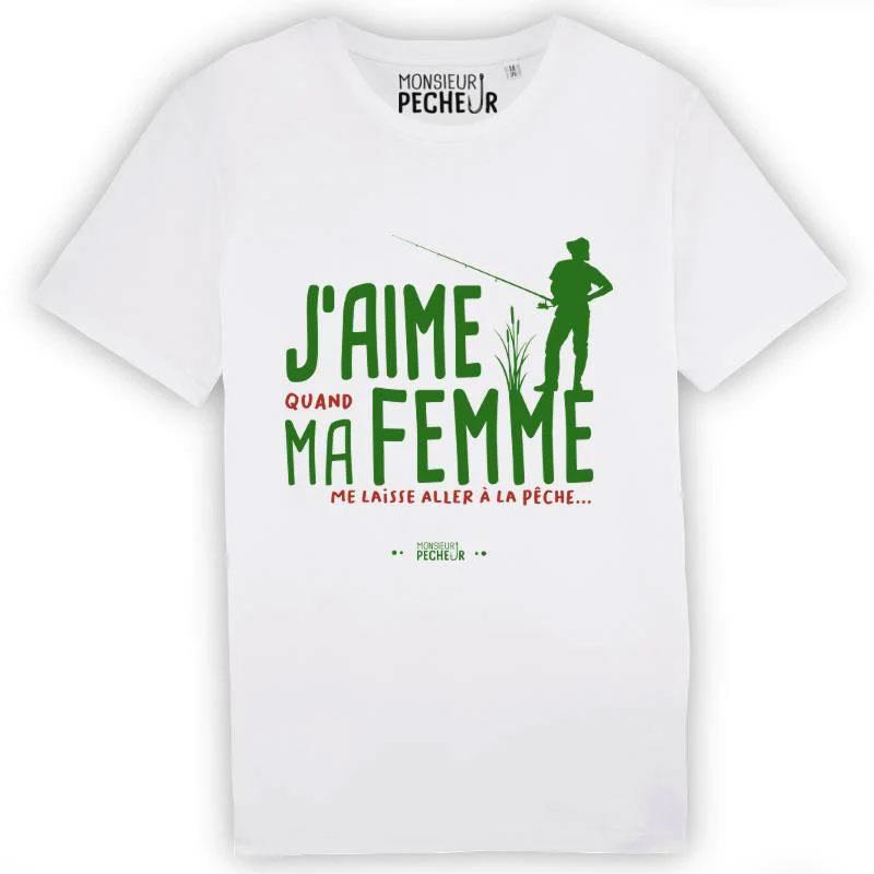 T-Shirt Kurzarm Herren Monsieur Pêcheur J'aime Ma Femme - Weiß