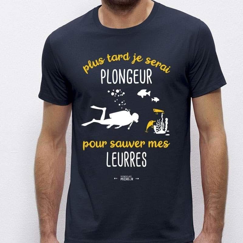 T-Shirt Mit Kurzen Ärmeln Für Herren Monsieur Pêcheur Plus Tard Je Serais Plongeur - Marineblau