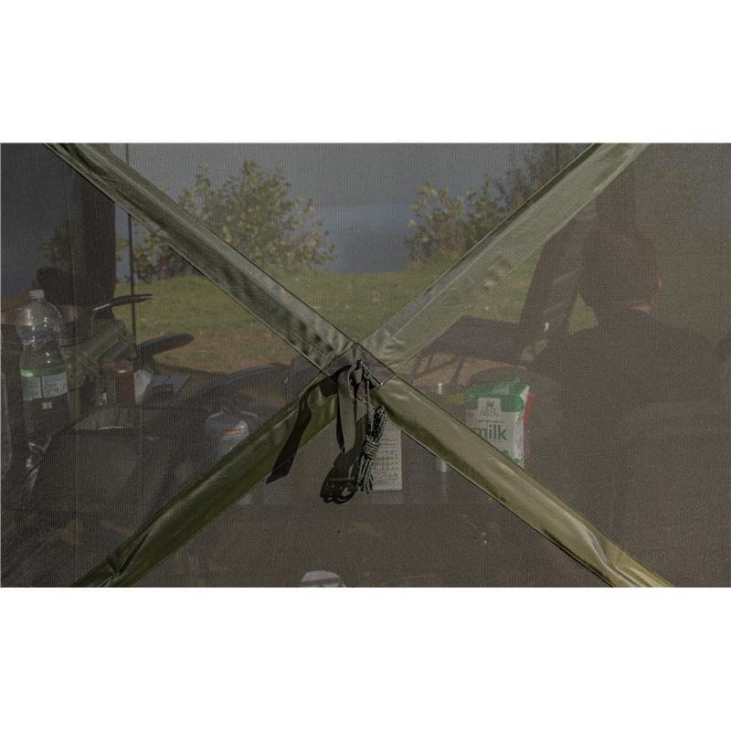 dieser unterschlupf ist rundum mit hochwertigem mozzi solar-gewebe ausgestattet, es ist jedoch auch möglich, feste seiten für zusätzlichen schutz zu wählen. die seiten sind aufrollbare stoffpaneele, sodass der sp cube an die bedingungen und bedürfnisse des anglers bei jeder session angepasst werden kann.
