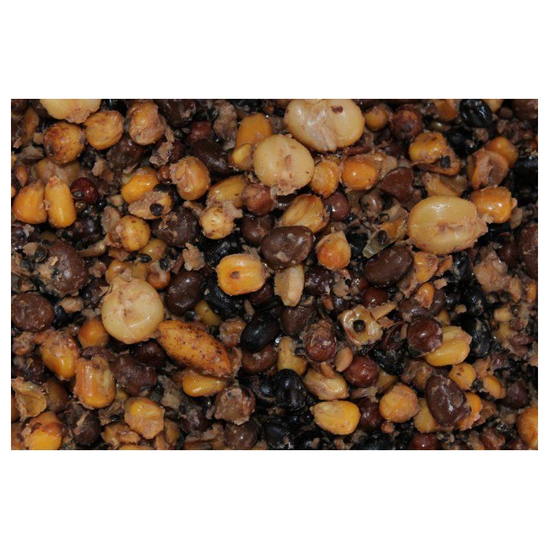 Insgesamt 8 Körner bilden unsere Mischung: Mais, Riesenmais, Hanfsamen, Ahorn, Tigernüsse, weiße Bohnen, gesprenkelte Bohnen und Sesam. Alles mit sehr grobem Korn, perfekt gekocht für eine optimale Verdauung.