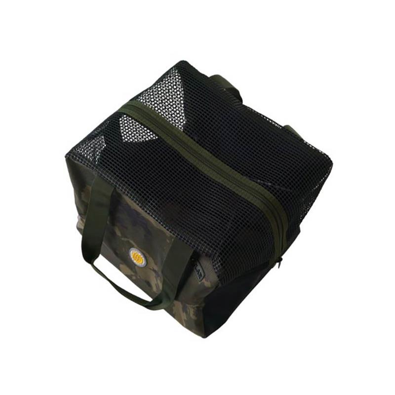 Hergestellt aus einem durch PU verstärkten Worldwide Camo 600D-Material, gummiertem Mesh und PVC, fördert die Tasche die Luftzirkulation und die Drainage, um den Inhalt in besserem Zustand zu halten.