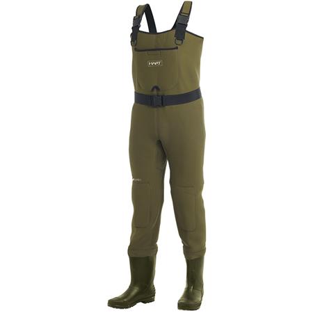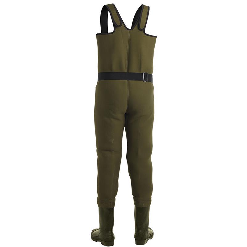 • Wathose aus 4,5 mm dickem Neopren • Integrierte PVC-Stiefel. Verstellbare Neopren-Träger • Vorgeformte Knieschützer und außenliegende Bauchtasche mit Klettverschluss • Vordere Nylonringe für Zubehör • Innentasche aus Nylon • Nylon-Gürtel • Reparaturset für Notfälle • Transporttasche aus Nylon